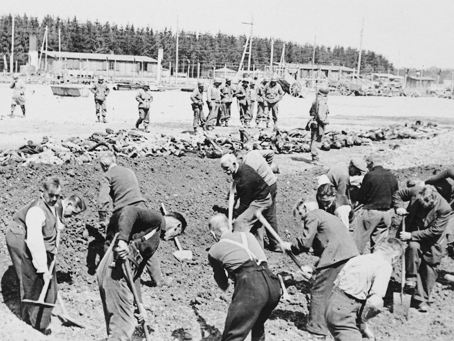 Die auf dem Lagergelände liegenden toten KZ-Häftlinge wurden nach der Befreiung des Lagers von der Zivilbevölkerung begraben. Quelle: United States Holocaust Memorial Museum, courtesy of Deborah Gaynes